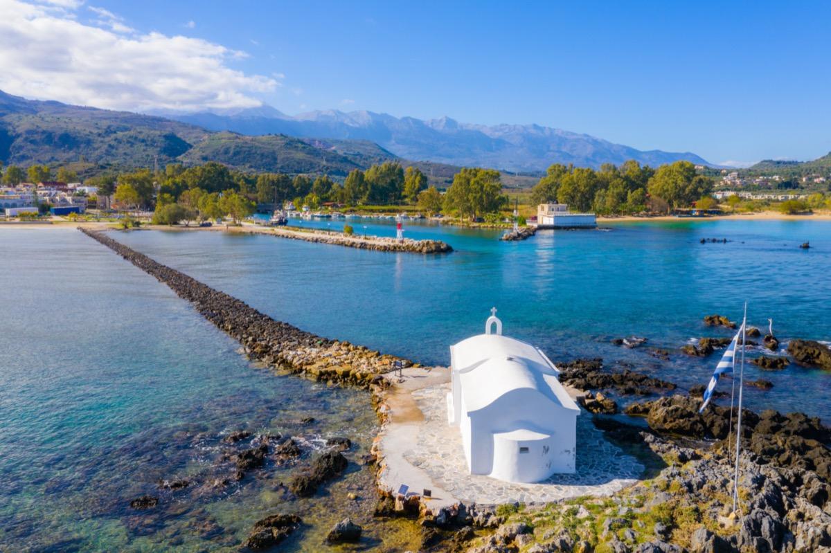 Georgioupolis is located on the border between the Prefecture of Rethymnon to the east and the Prefecture of Chania to the west, while it belongs to the latter. The area around Georgioupolis is Apokoronas with its picturesque villages and lots of greenery.The river Almyros flows into Georgioupolis, while shortly before it forms a small lake that is home to many birds and animals. The lake can be seen from the national road as you approach Georgioupoli from Chania.
