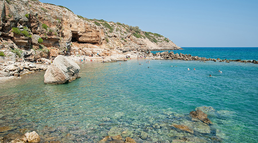 It is a beach between Bali and Skepasti Mylopotamos. Dafnoruma means runnel and together with the hundreds of oleanders they end up in the sea. It is formed by successive rocks and impressive mirror-cliffs with a smooth surface. It consists of small caves that provide shade and relaxation to visitors.